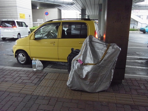 前後のホイールを外して、輪行袋に入れれば、ハイおしまい。